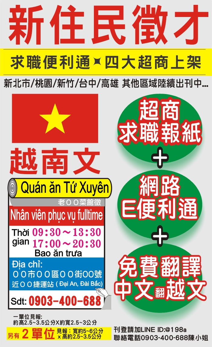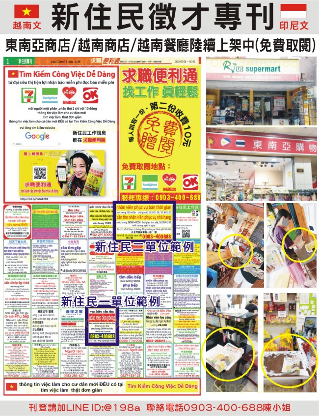0903400688 求職便利通 臺灣新住民 美工稿求職便利通