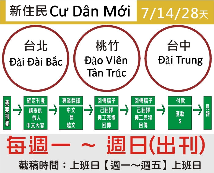 - 刊登類型: 求職便利通 臺灣新住民 台北市 新北市 桃園 新竹 台中 高雄
