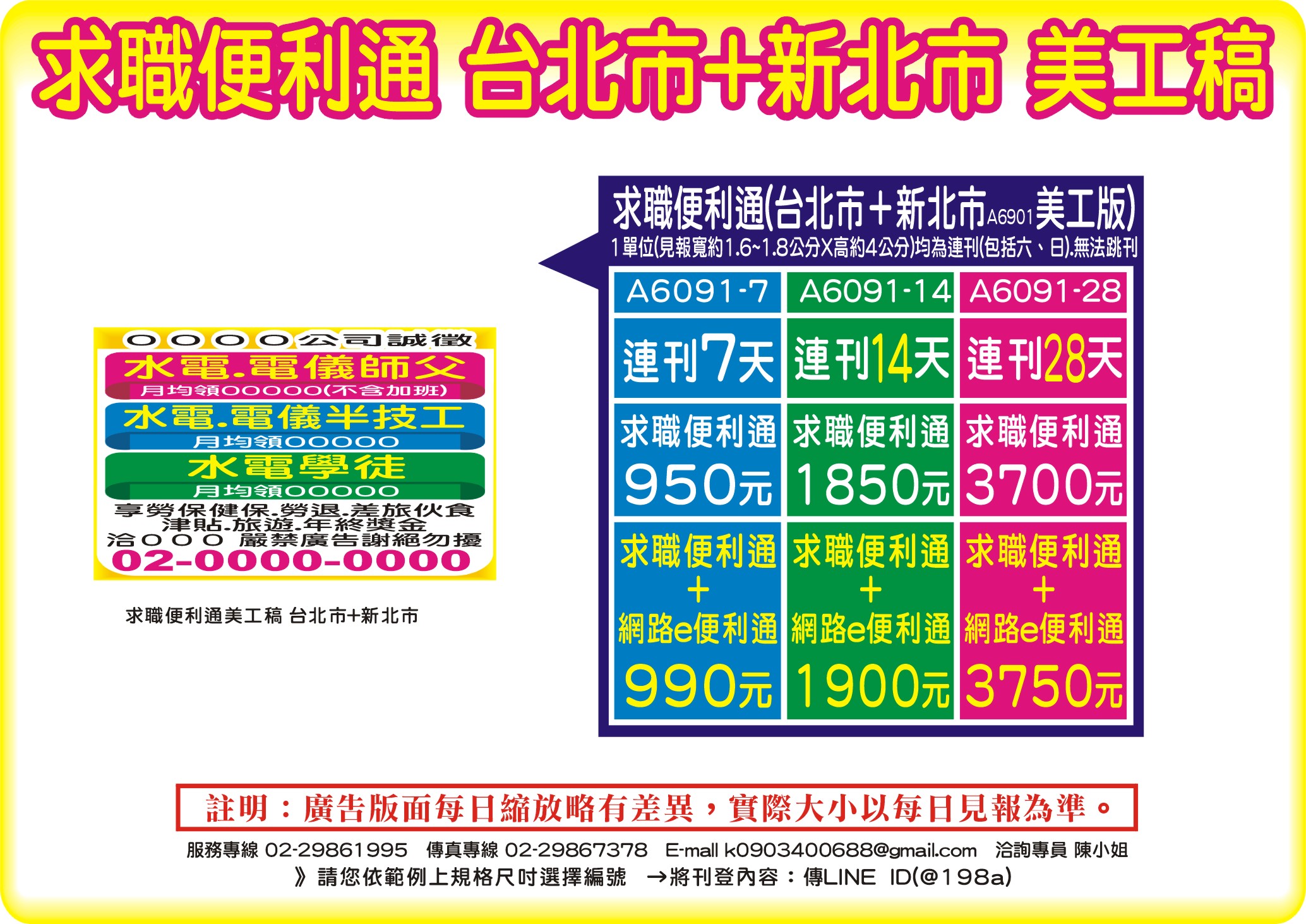 - 刊登類型: 徵人,找人.徵才.美工稿.套色稿.報紙廣告